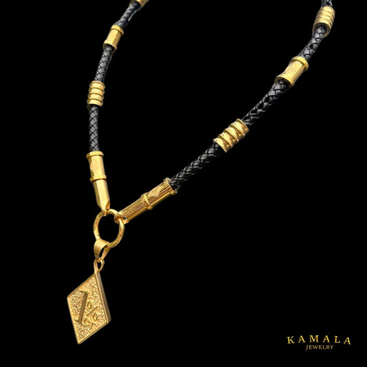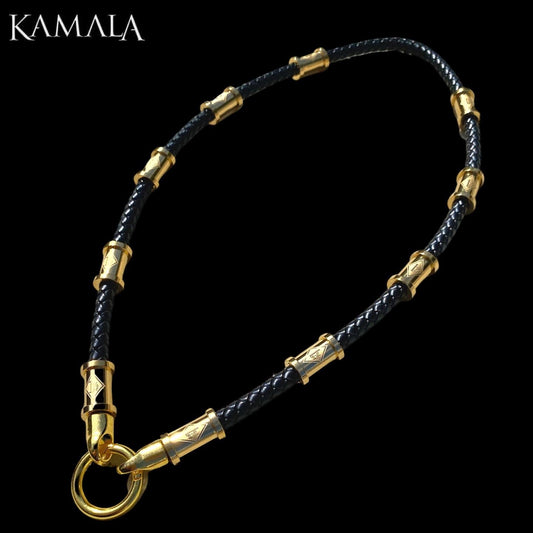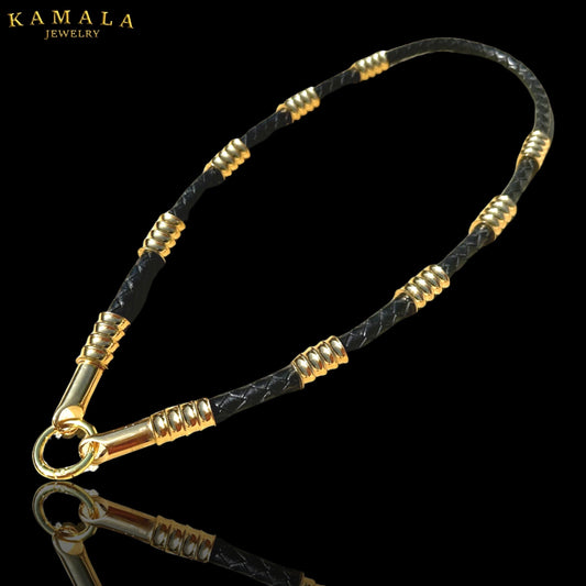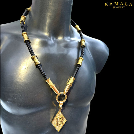 13 Exklusive Leder Halskette - Schwarz & Gold