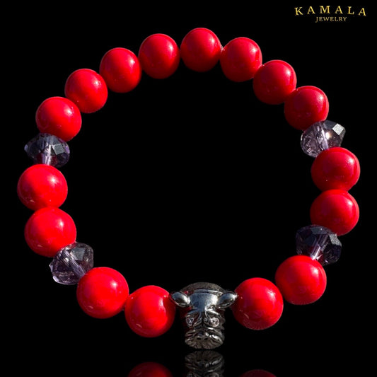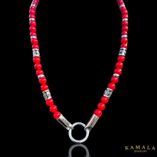 Bulldogge Halskette - Rotem Jade mit Dark Silber