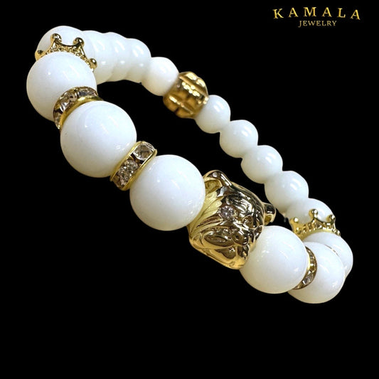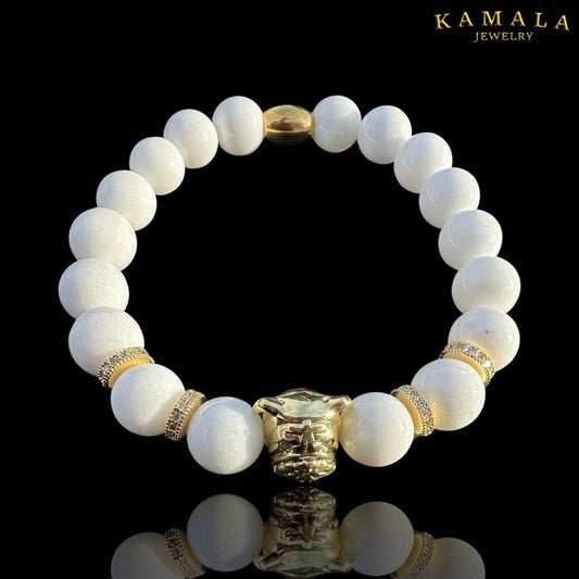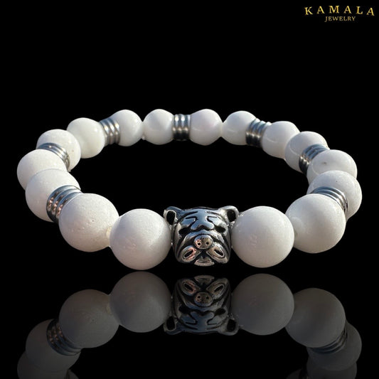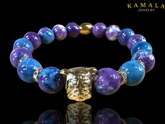 Bulldogge Armband - Regenbogen Jade mit Gold