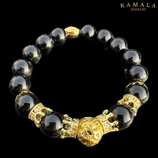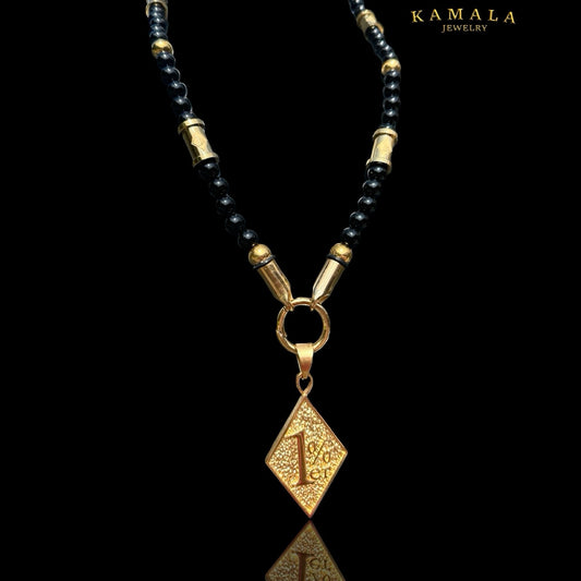 1%er Perlenkette aus Onyx und Goldene Perlen