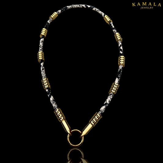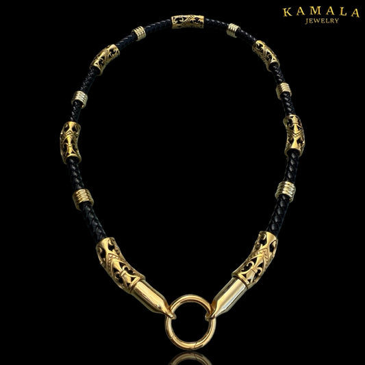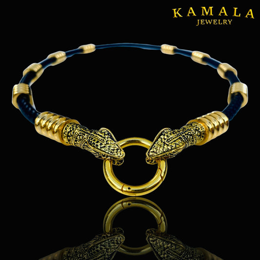 Schwarze Leder Halskette mit Gold & Schlangen - Capone Snake