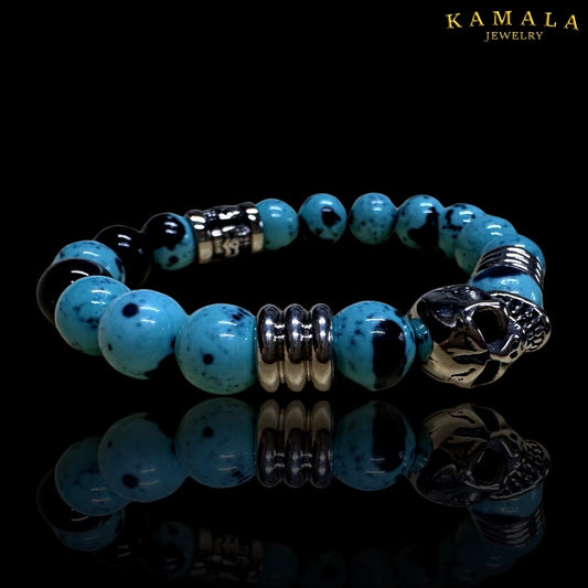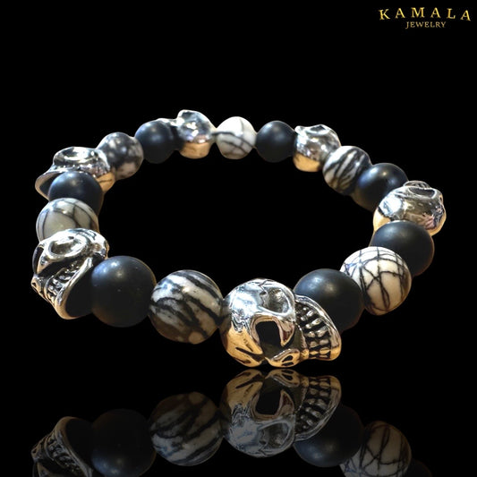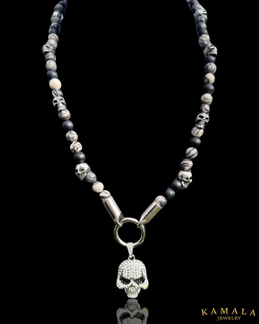 Omerta Halskette - Zebra Jaspis & Silber mit Skulls