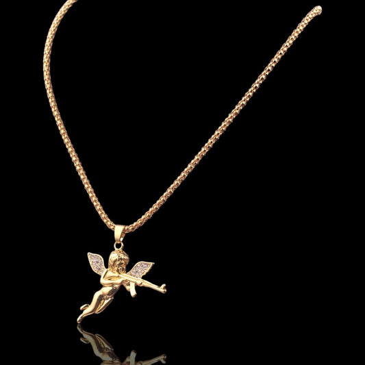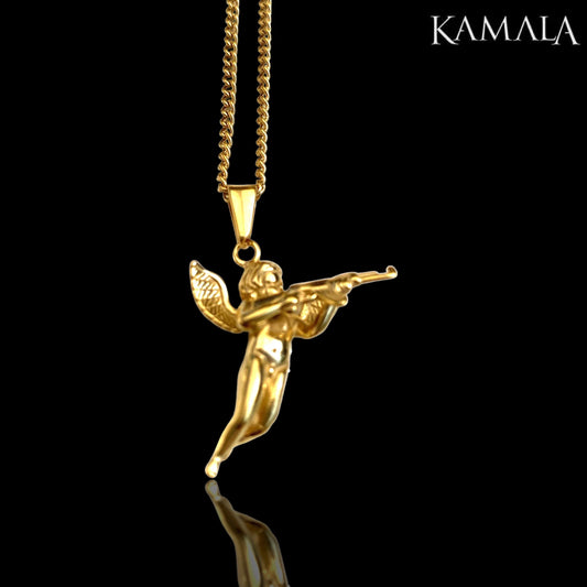 Engel mit AK47 Halskette - Gold & Rheinstones