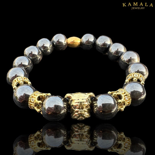 Halskette mit Löwenkopf & Krone - Gold Rheinstones