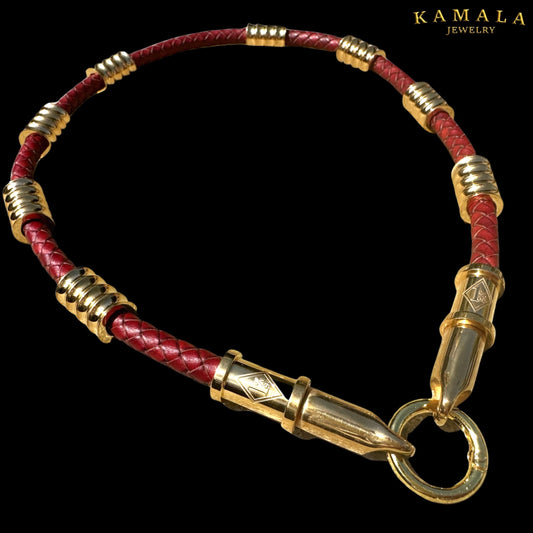 Exklusive 1%er Halskette - Schwarze Leder Mit 6 stück 1%er Hülsen - Gold