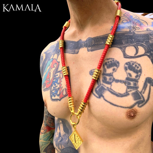 Zu KategorieDieser auffällige Anhänger in Rot und Gold zieht alle Blicke auf sich, und passt zu allen unseren Halsketten, egal ob Leder, Kautschuck, Perlen oder Edelstahl