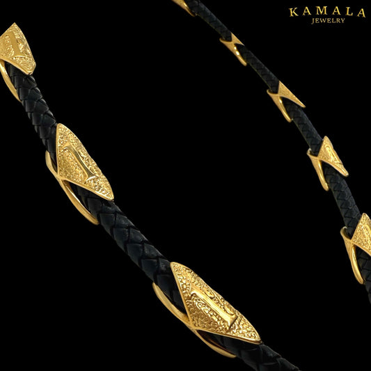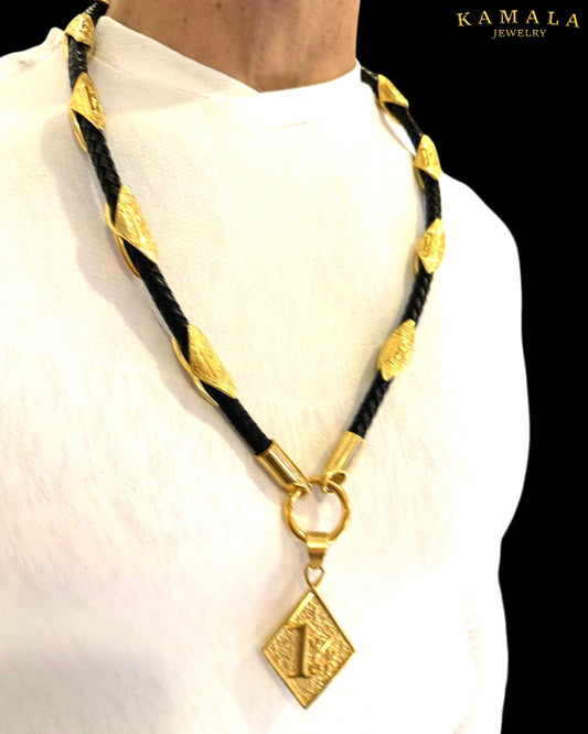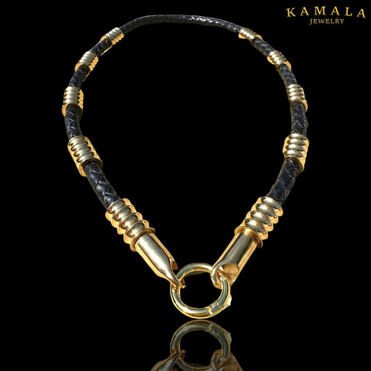 Schwarze Leder Halskette mit Gold - Capone Gold