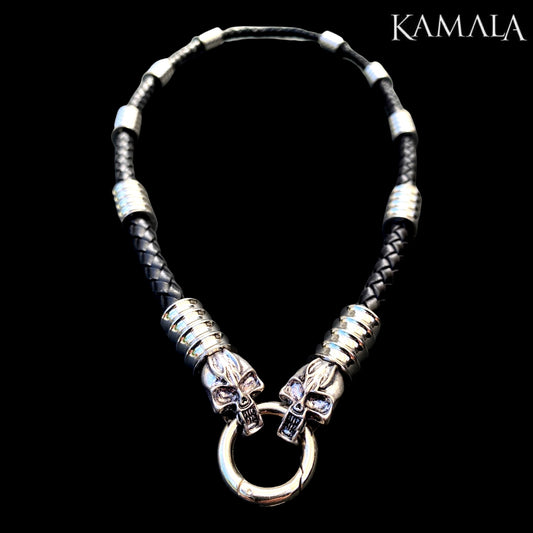 Skull Biker Set Lederhalskette & Totenkopf Anhänger
