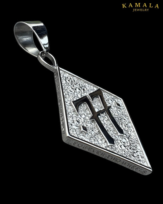 NEU - 1%er Halskette - Schwarzem Leder & Silber - Raute Design