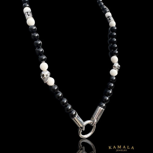 Omerta Halskette - Zebra Jaspis & Silber mit Skulls