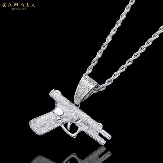 Engel mit AK47 Halskette - Gold & Rheinstones