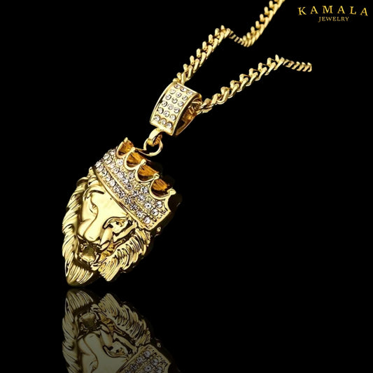 Halskette mit Löwenkopf & Krone - Gold Rheinstones