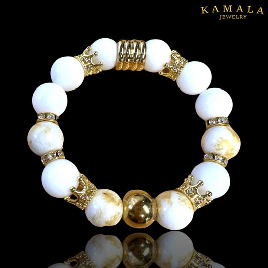 Bulldogge Armband - Regenbogen Jade mit Gold