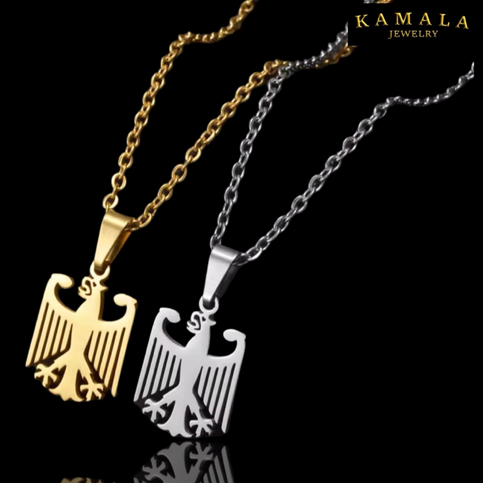 Der deutsche Adler steht seit Jahrhunderten als Symbol für Stärke, Freiheit und Souveränität. Dieser detailreiche Adler Halskette aus Vergoldetem Edelstahl verbindet klassische Symbolik mit modernem Schmuckdesign.