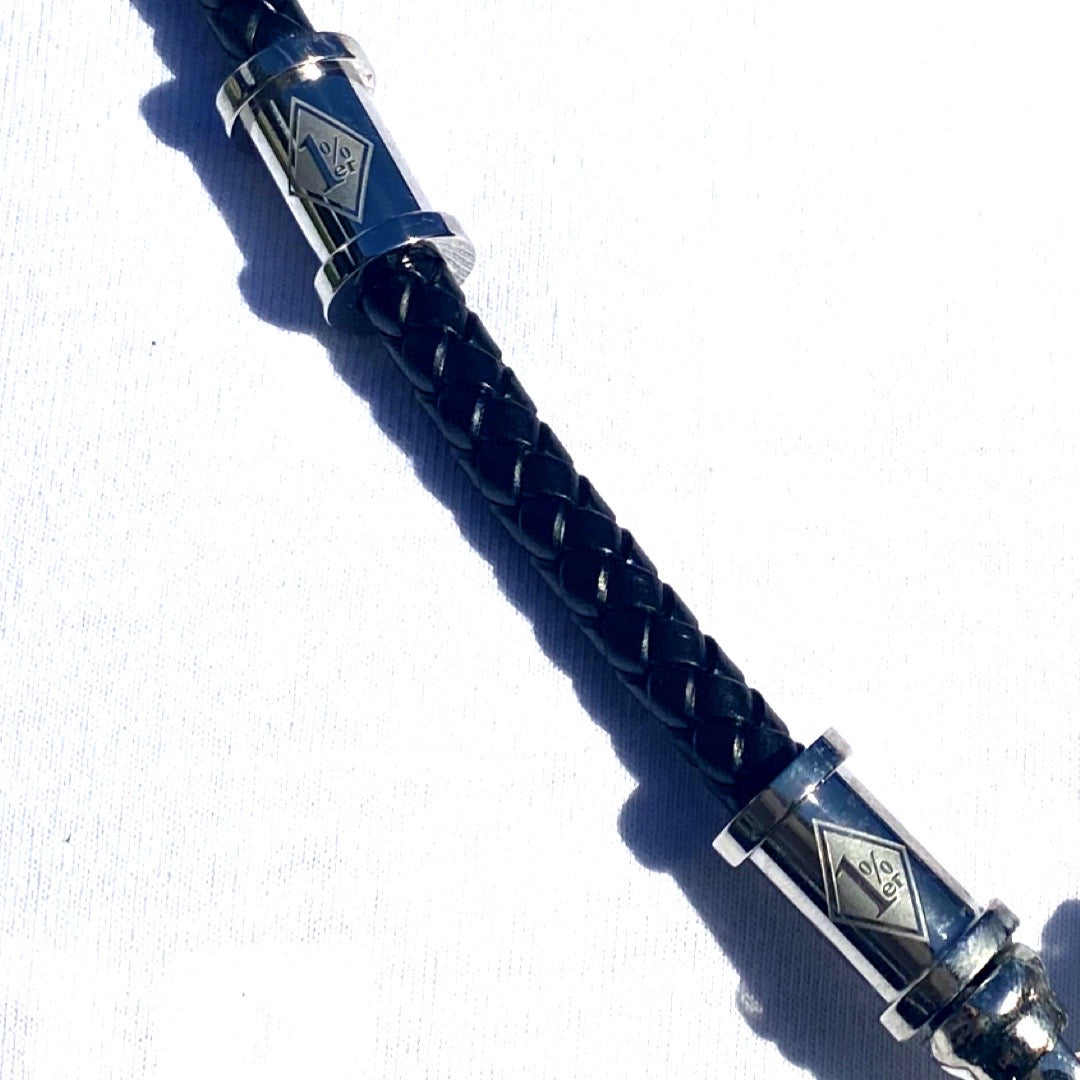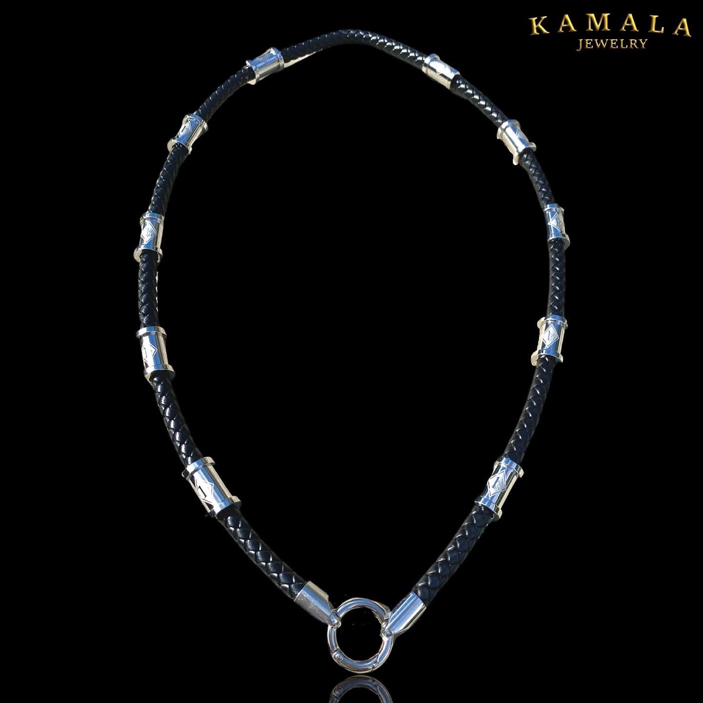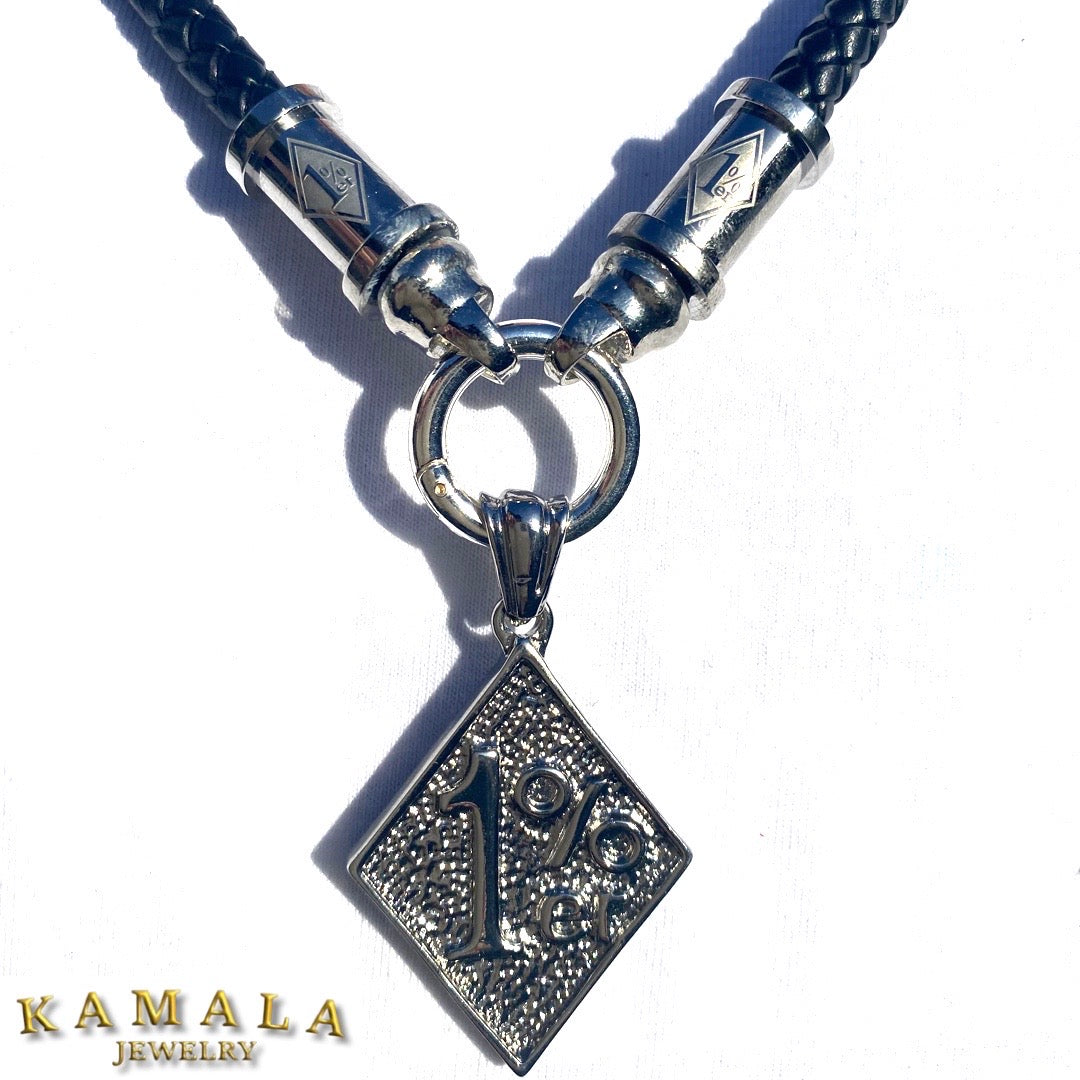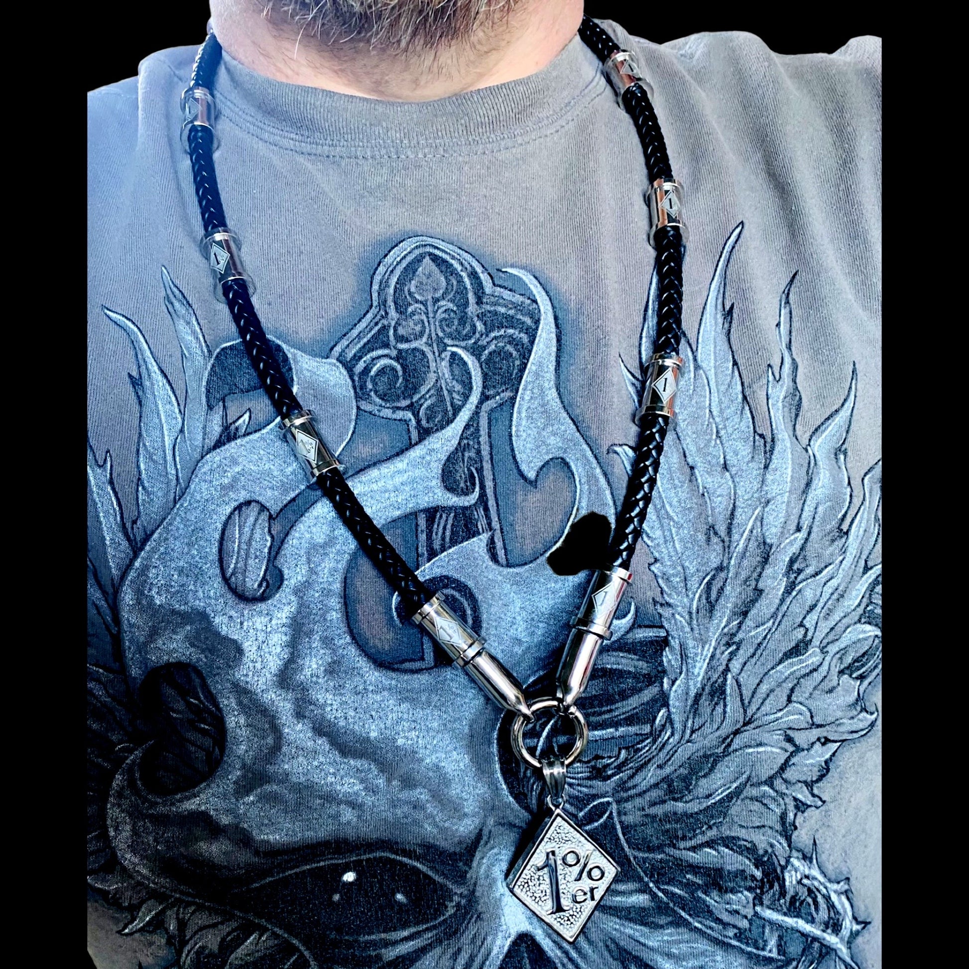 Exklusive 1%er Halskette - Schwarze Leder mit 1%er Hülsen - Silber