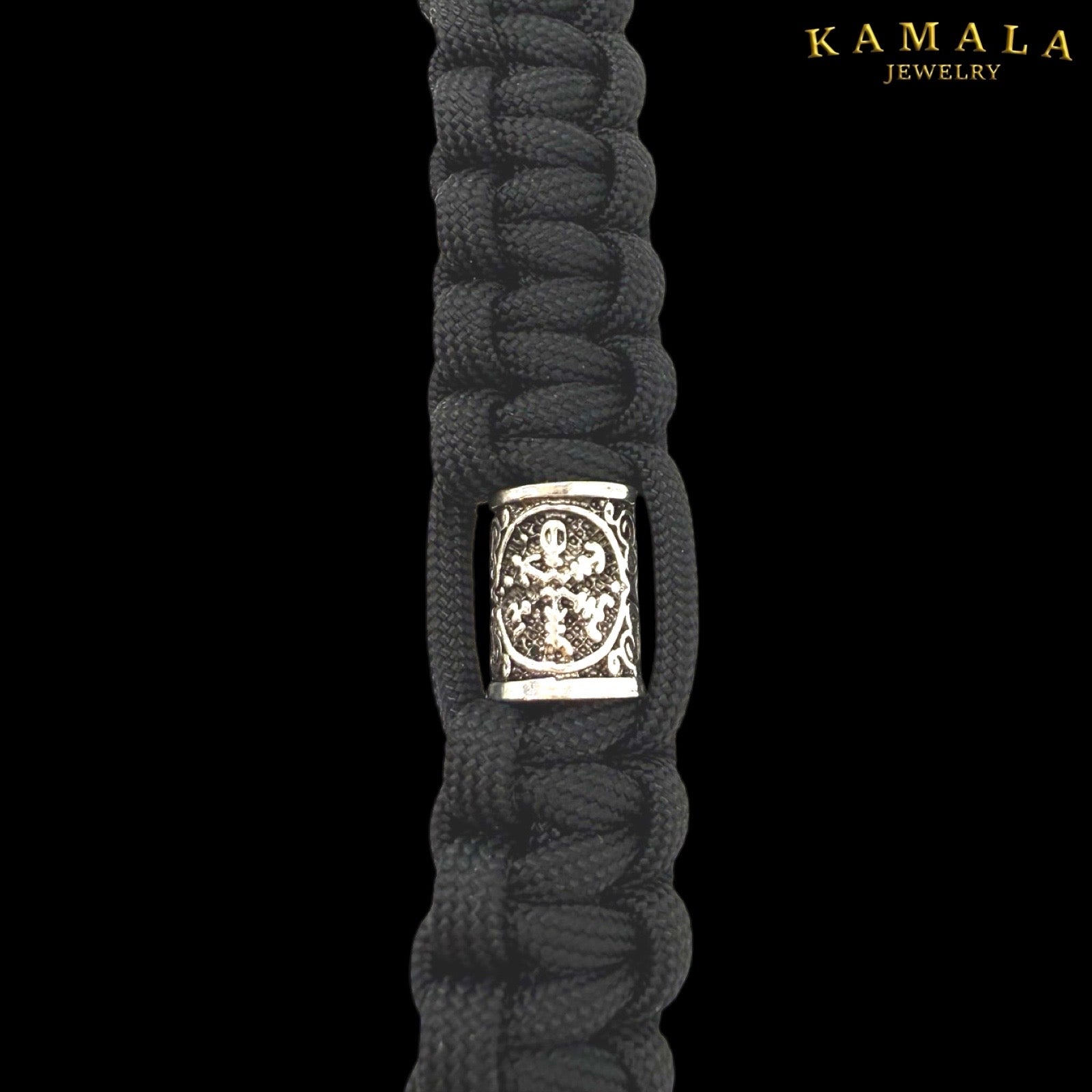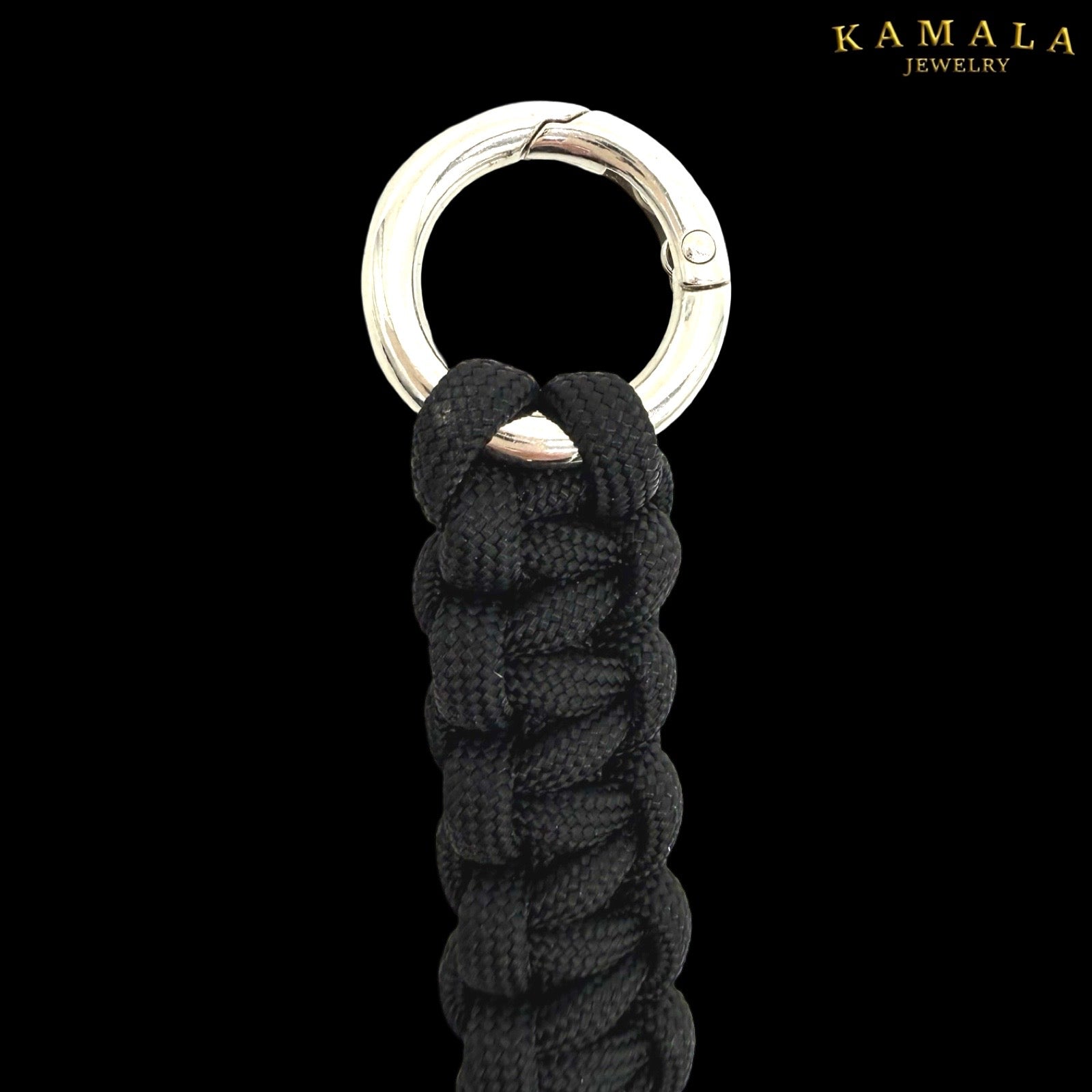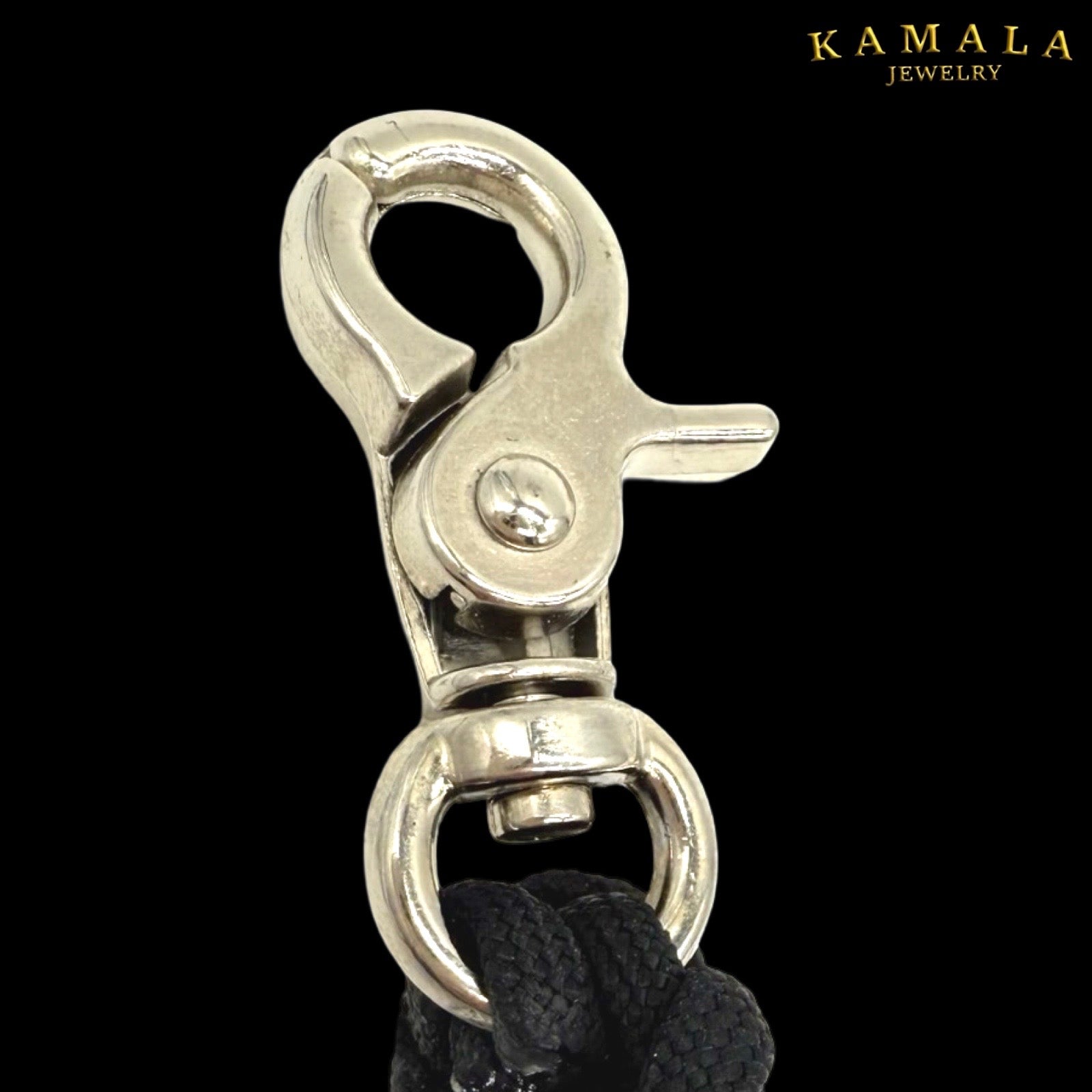 Stilvolle Hosenkette/Portemonnaiekette in Schwarz, handgeflochten aus robustem Paracord. Verziert mit hochwertigen Edelstahlhülsen im Wikinger-Design und massiven Edelstahlperlen in erstklassiger Qualität.