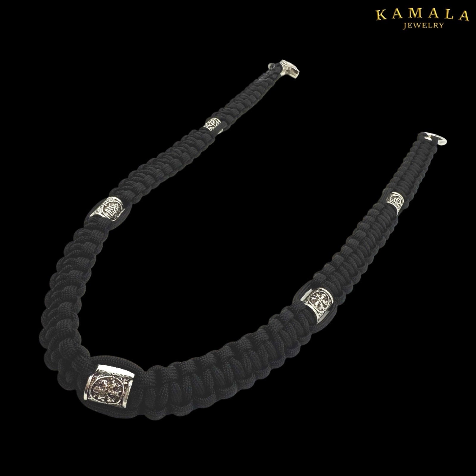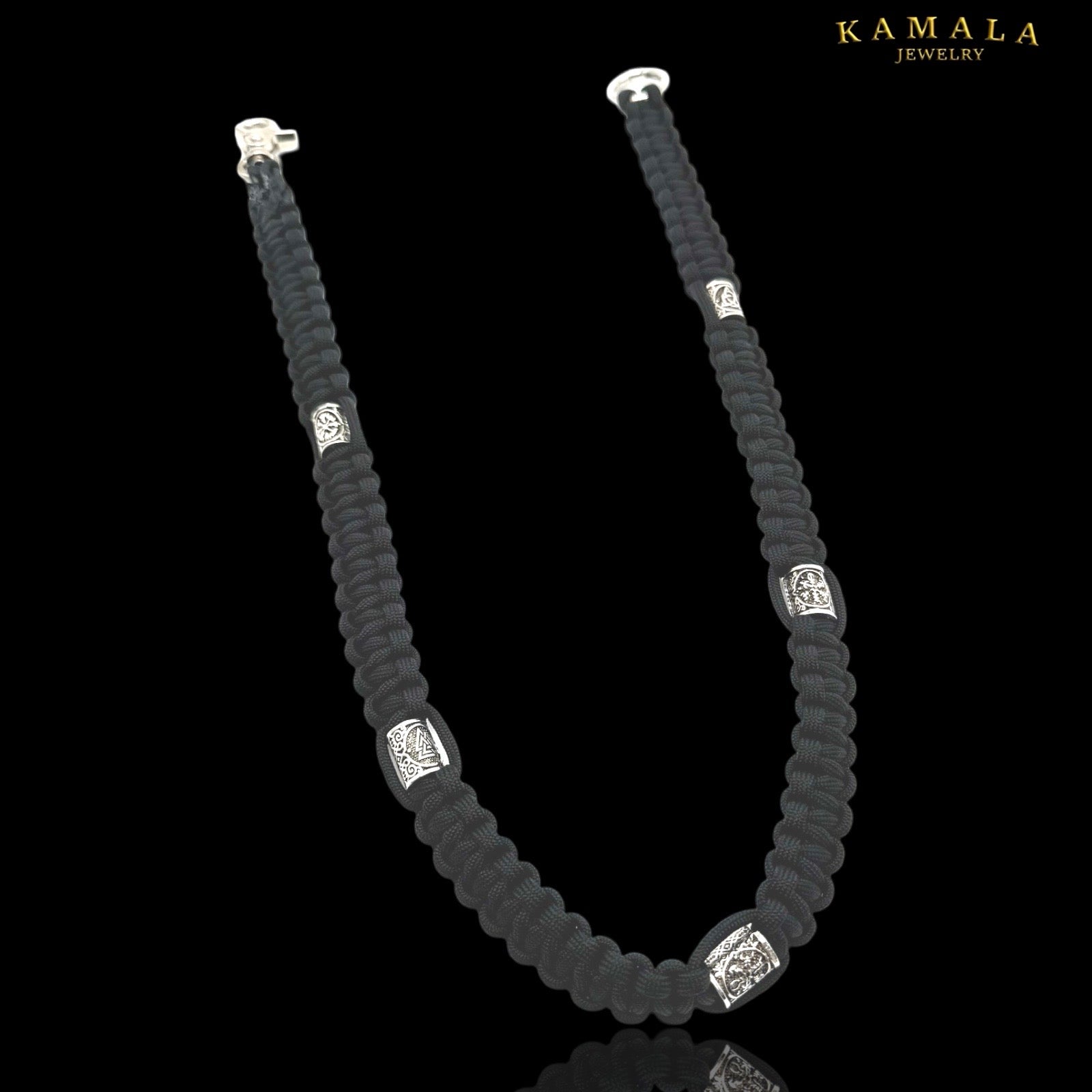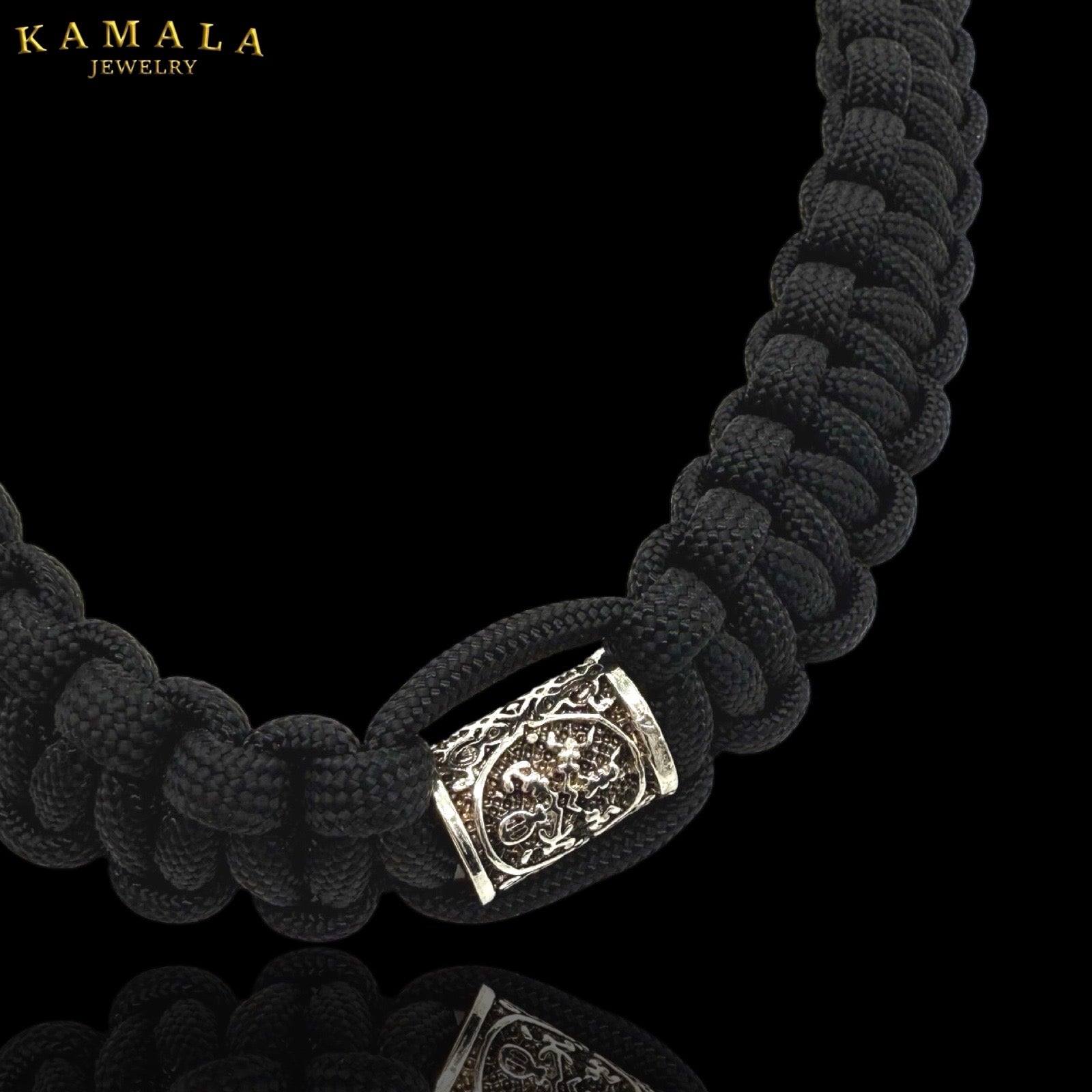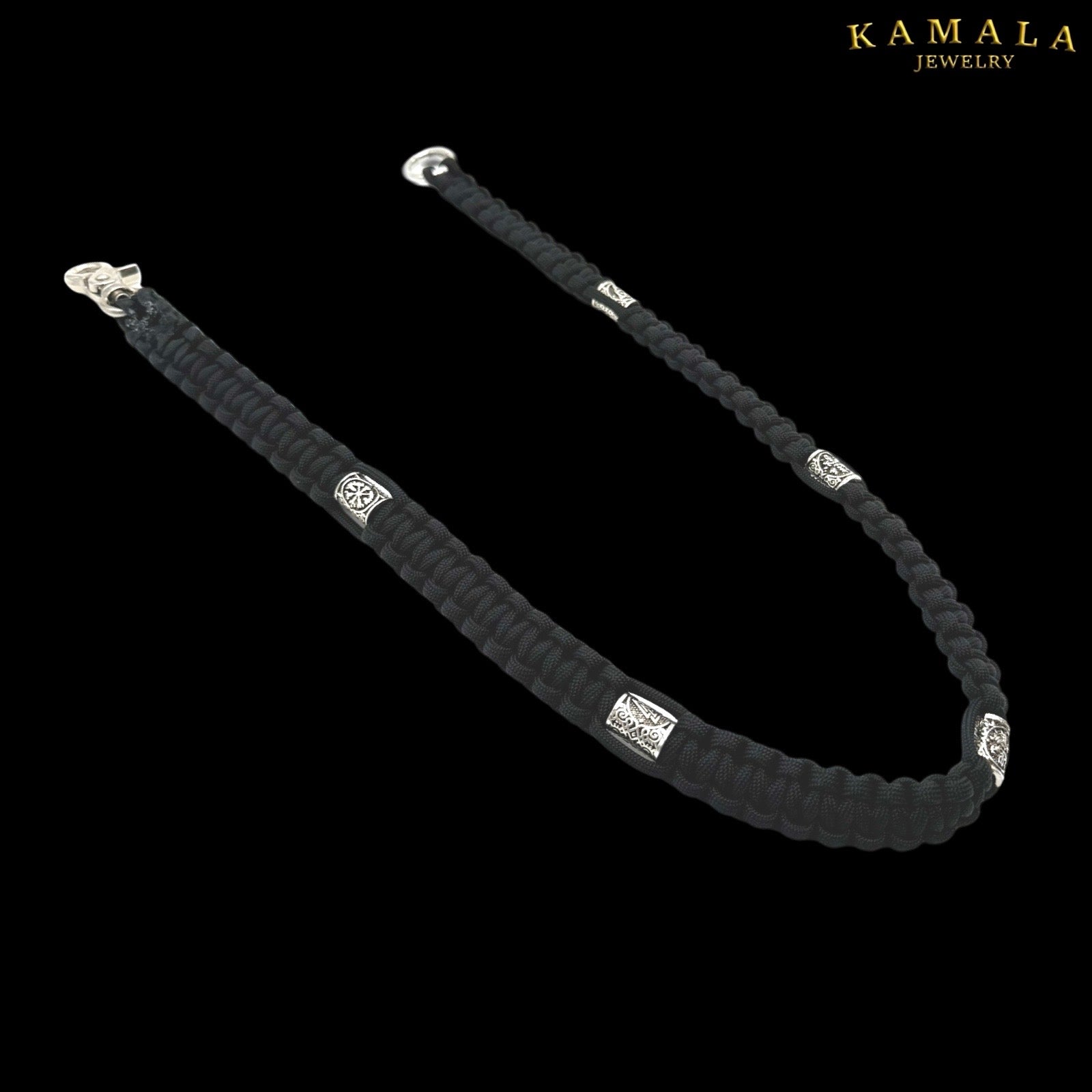 Stilvolle Hosenkette/Portemonnaiekette in Schwarz, handgeflochten aus robustem Paracord. Verziert mit hochwertigen Edelstahlhülsen im Wikinger-Design und massiven Edelstahlperlen in erstklassiger Qualität.