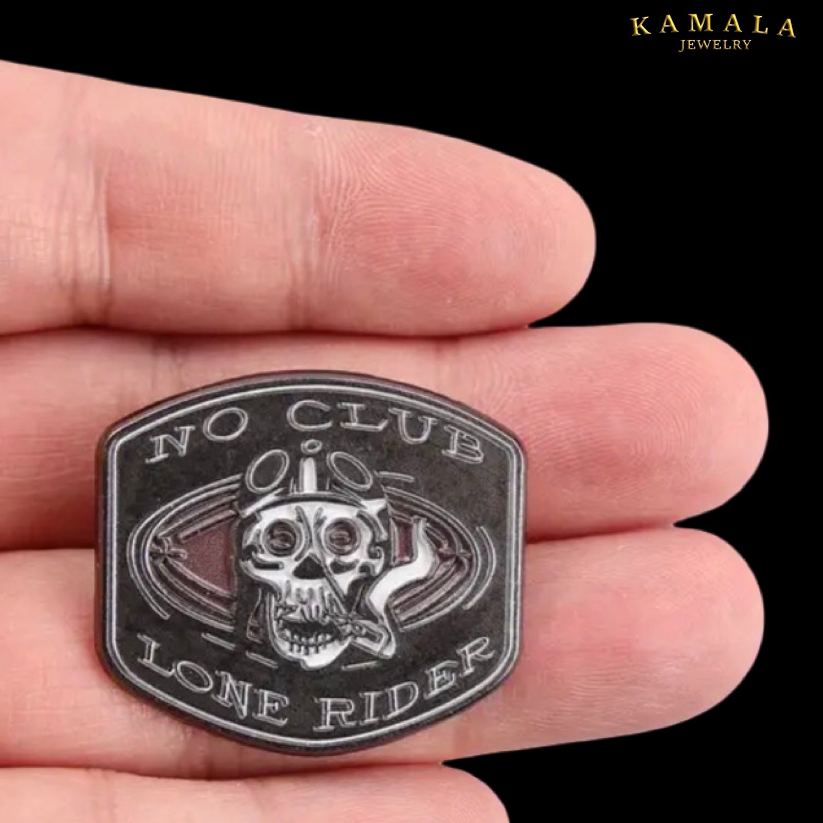 „No Club – Lone Rider“ Skull Pin – Edelstahl